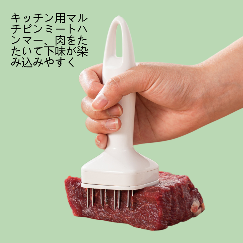頑丈なステンレス製で錆びにくい。肉の筋切りや柔らかくする作業に最適。握りやすいデザインで調理を効率化。